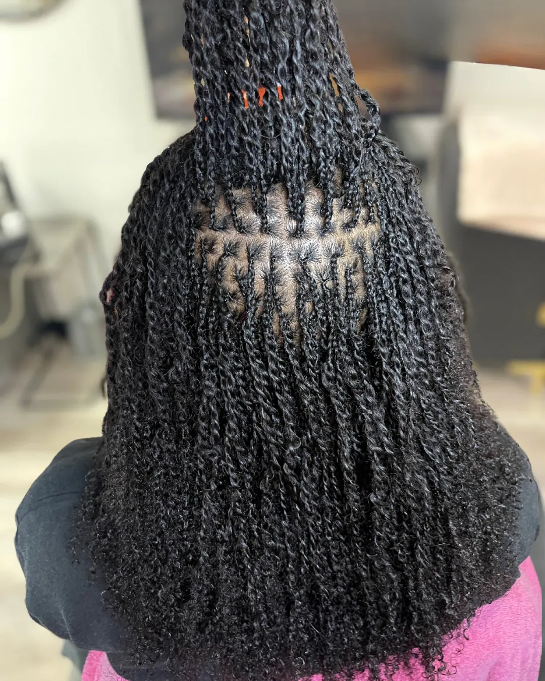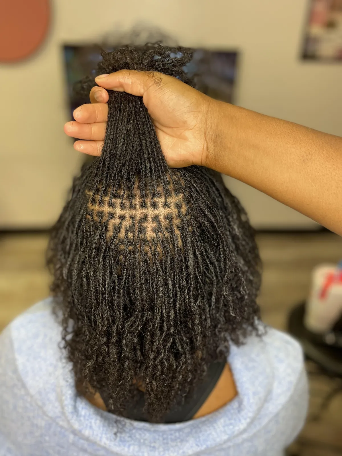 Getting Microlocs is a detailed, structured process that starts with creating a clean grid pattern, installing each loc one by one, and securing your foundation with interlocking or two-strand twists. Once your Microlocs are in, the guesswork disappears. You’re no longer waking up stressed, wondering how to style your hair, what products to use, or how to “tame” it for the day. Microlocs give you built-in styling, built-in neatness, and built-in confidence — all with low maintenance. It’s the freedom of knowing your hair will always look good, even on your busiest days.